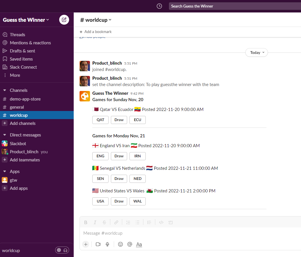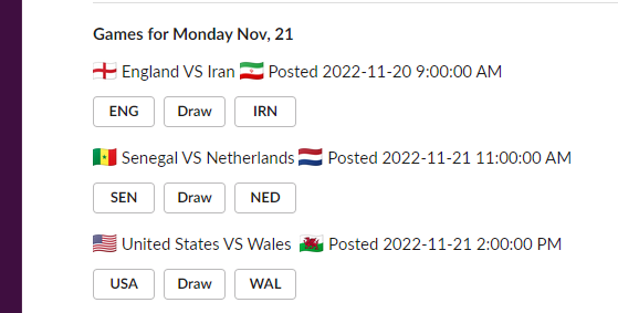 Try to guess the outcome of today's matches. Compete with your coworkers to see who can guess more matches correctly. The next cup you can guess about is going to be played in Qatar in the winter of 2022
